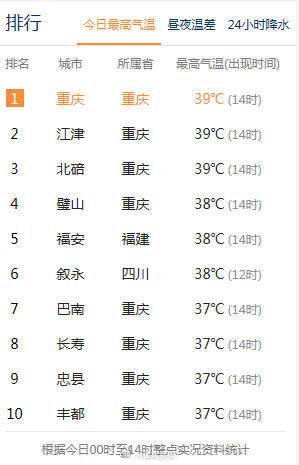 重庆拿下全国10大高温榜8席