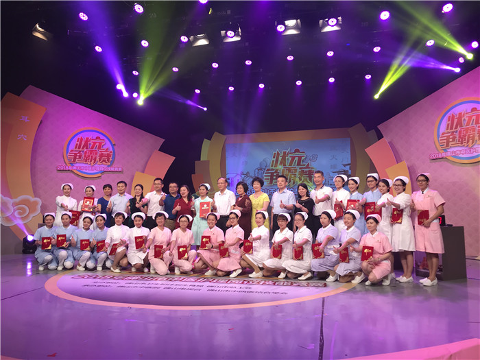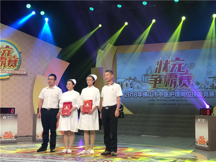 9月12日,由佛山市卫生和计划生育局、佛山市总工会主办的“2018年佛山市中医护理岗位技能竞赛”状元争霸赛在佛山电视台2号演播厅举行,佛山市卫生和计划生育局和佛山市总工会的有关领导出席了现场,并为获奖选手颁奖。
