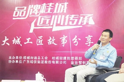 珠江时报讯(特约通讯员/邹韵斯摄影报道)近日,桂城街道创思驿站联合桂城街道总工会在金谷智创产业社区举行“品牌桂城匠心传承”大城工匠故事分享会,邀请佛山大城工匠龙莉英和李培涛,向理论学习实践联系点——广东昭信集团股份有限公司的产业工人分享匠心故事、传承工匠精神。