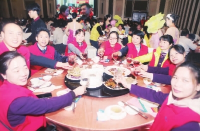 ■职工代表举杯迎新春。珠江时报记者/戚伟雄摄