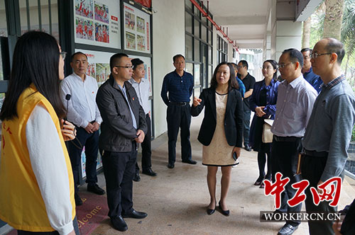 中工网讯 4月4日上午,佛山高明区总工会常务副主席尹贤荣一行7人来到南海,先后参观了南海工会新媒体平台建设运营和职工服务中心、职工之家等职工服务阵地,交流学习建设工作。