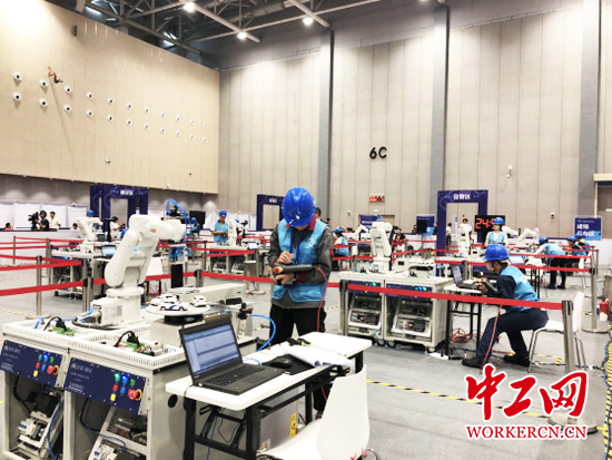 中工网讯 10月18日,“2019年度广东省职工工业机器人职业技能竞赛”决赛及颁奖典礼在广东佛山潭洲国际会展中心举行,本次大赛分为教师组和企业职工组,通过实际操作,考验参赛者编程技能及操作的熟练程度。经过10月16日至18日为期3天的工业机器人应用技能大比拼,最终由深圳市斯派克光电科技有限公司王贤辰获得比赛总成绩第一名,并将获得由广东省总工会授予的“广东省五一劳动奖章”称号。