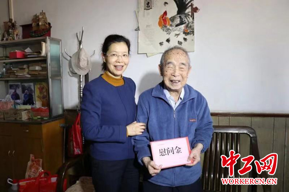 随后,刘珊主席来到劳模何雅强家中,探访了今年91高龄的何伯。何伯年轻时从中山医学院专业后,1954年来到佛山地区人民医院工作。70年代,到原佛山地区最贫困落后的恩平县,依靠领导和群众,经过多年努力,为当时佛山地区和恩平县建立了防治皮肤病、性病、麻风病三级防治网。刘珊主席详细询问了何伯的身体状况和生活情况,感谢他为医疗方面做出的贡献,嘱咐他要保重身体,并代表佛山市总工会向他送上慰问金及慰问品,祝愿他和家人度过一个欢乐、祥和的春节。