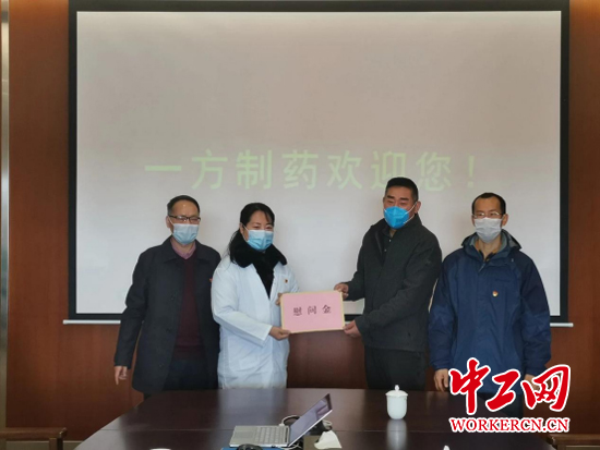 同一时间,区总工会常务副主席吴忠林来到位于里水的广东一方制药有限公司,为企业工会送上慰问金并感谢该企业生产一线岗位的职工在节日期间坚守岗位,成为了战胜新型冠状病毒感染的肺炎疫情的坚实力量。吴忠林还仔细叮嘱职工们要做好个人防护工作,减少被感染的机会。据了解,一方制药于1月26日紧急复工,主要生产发往全国各地的防治新型冠状病毒感染肺炎的中药配方颗粒药品。