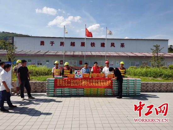 中工网讯 为关爱在高温奋战的一线职工,7月16日下午,佛山市高明区总工会在中铁十二局佛山一环西拓工程第BHS-02合同段南环项目部开展了2020年防暑降温送清凉活动。此次活动,高明区总工会权益经济部部长廖伟健一行为项目部一线职工们送去了清凉饮品,在炎炎夏日中为职工带来一丝惬意、一缕清凉。