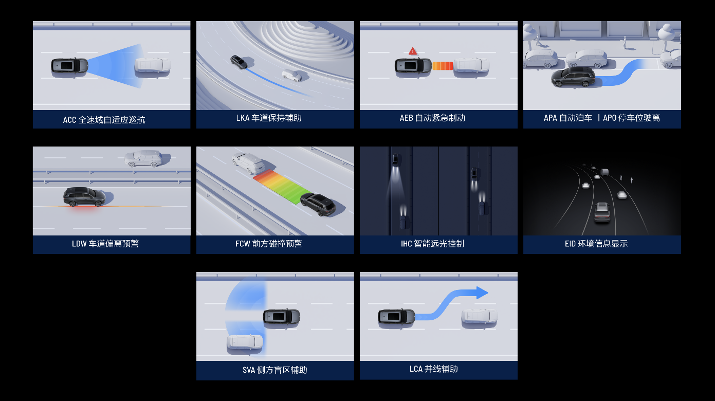 理想ONE自动辅助驾驶系统的功能包括:ACC全速域自适应巡航、LKA自动车道保持、AEB自动紧急制动、FCW前向碰撞预警、LDW车道偏离预警、LCA 并线辅助、APA全自动泊车、APO停车位驶离、360°高清全景影像、SVA侧方盲区辅助、IHC远近光自动控制、EID环境信息显示等。