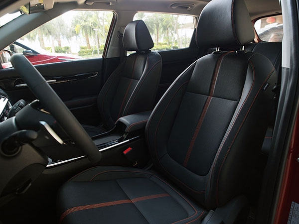进入车内,最直观感受就是空间够大。4345mm*1800mm*1645mm的车身尺寸与2630mm的轴距,可以说把小型SUV的驾乘空间做到了极致。坐入驾驶位,明显感受到使用的高级皮质座椅,可以提供极佳的支撑性和包裹性,全新设计的推挡式档杆与钢琴物理中控按键,彰显高级质感。值得一提的是,驾驶舱两侧配备了氛围灯模块,支持8种色彩调节,可根据音乐节奏切换色调。