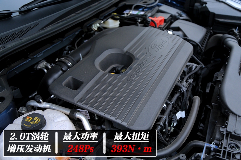 锐际搭载的是第四代EcoBoost 2.0T双涡流涡轮增压发动机,匹配8AT变速箱,最大功率248Ps,最大扭矩393N·m,在2000-5000rpm便可提供320N·m强劲扭矩输出。