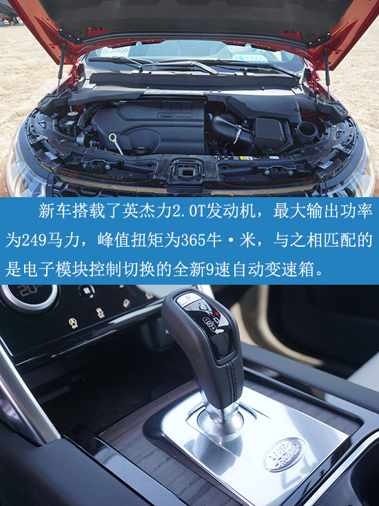 动力方面,全新路虎发现运动版搭载了英杰力2.0T发动机,最大输出功率为249马力,峰值扭矩为365牛·米,与之相匹配的是采用电子模块控制档位切换的全新9速自动变速箱。