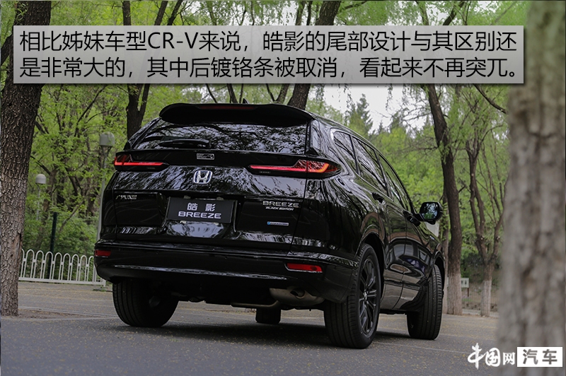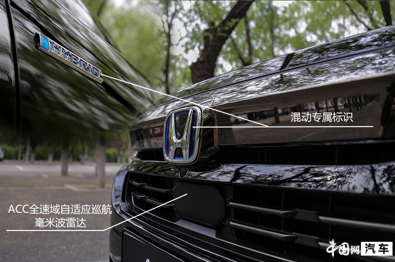 如何区分燃油、混动两种版本,直观的是混动的蓝色“H”标(广本车型首次使用),翼子板处的“HYBRID”标识,以及隐藏式排气布局。