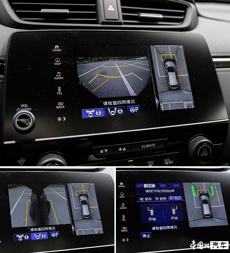 该车配备了360°全景影像,成像的畸变较小,也有辅助线做引导,但是问题在于成像质量的细腻程度还有进步的空间,而且整个UI设计似乎缺少点科技感。