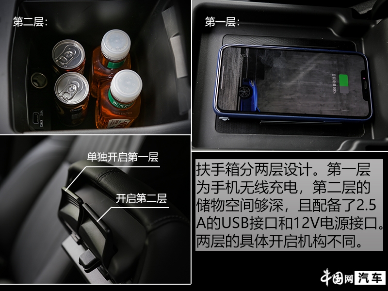 按键式换挡机构为中央通道省下了不小的纵向空间,前排还配备了一个1.0A的USB接口。