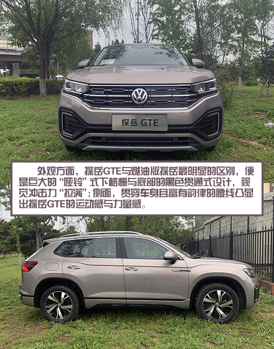 整体来看,探岳GTE的外观相比燃油版车型更有攻击性与科技感,小编试驾的“星耀金”配色稍显温和,星辰蓝与锰石黑则看起来更“凶悍”一些。