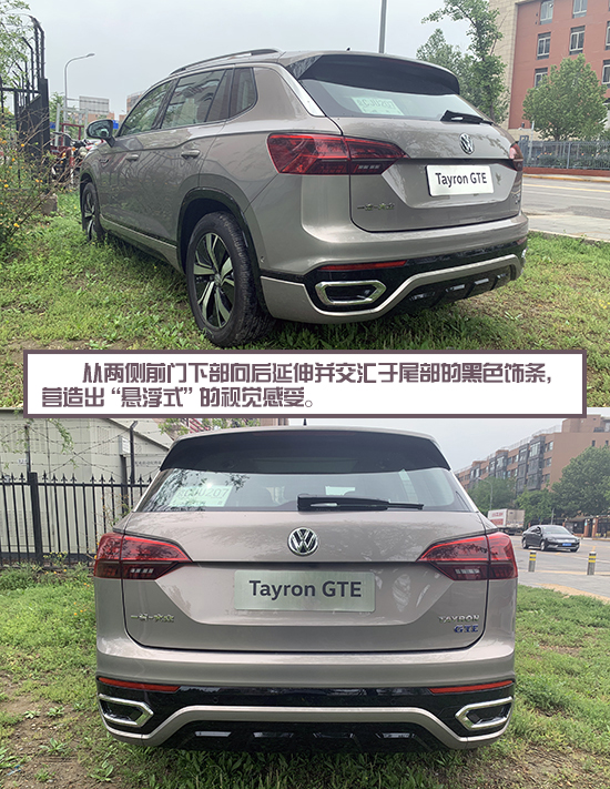 侧面,贯穿车身且富有韵律的腰线凸显出探岳GTE的运动感与力量感;从两侧前门下部向后延伸并交汇于尾部的黑色饰条,营造出“悬浮式”的视觉感受。尾部的GTE标识,则再次强调了这款车的“非同一般”。