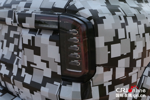 从侧后方观察,新车方正的造型与后腰线的外凸式设计,进一步强化了硬朗的风格气质,而上小下大的分体姿态,则有助于降低车尾的视觉重心,使整车更具稳重感与层次感。