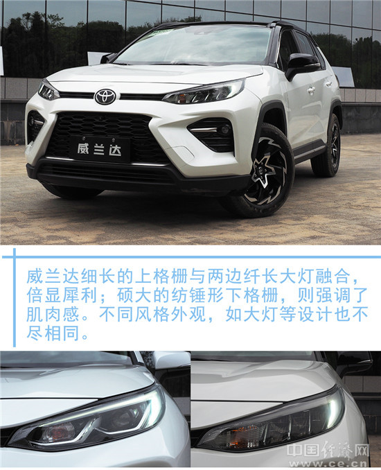 作为广汽丰田TNGA家族迎来的第四位成员,威兰达自然继承了丰田TNGA架构下更具个性化的产品外观设计。众多切削式的硬朗线条,让威兰达具有SUV车型该有的阳刚之气。前脸分体式格栅中,细长的上格栅与两边纤长大灯融合,倍显犀利;硕大的纺锤形下格栅,配合两侧的雾灯格栅,则强调了车辆的肌肉感。
