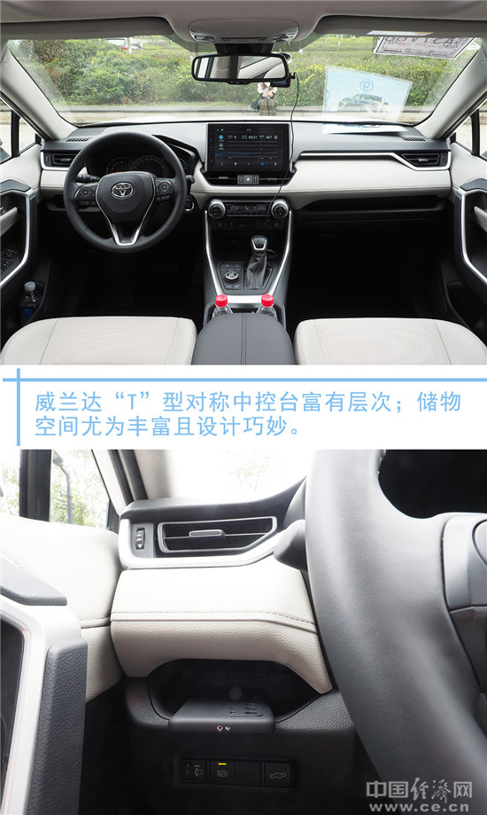 进入车内,威兰达简约的设计风格符合当下潮流。“T”型对称中控台在“横平竖直”间富有层次,尤其是记者本次试驾车型搭配的黑白拼色内饰,更能凸显质感。同时令记者满意的是,威兰达车内储物空间丰富且设计巧妙,如副驾驶托盘和驾驶席托盘与内饰融为一体,更方便实用。