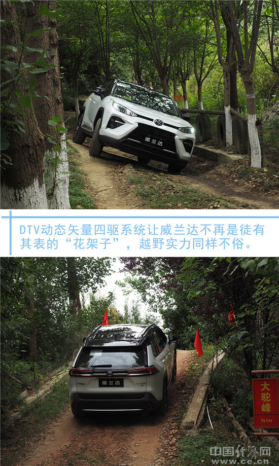 在越野路段试驾中,记者首先体验了威兰达DTV动态矢量四驱系统的能力。DTV的左右后轮分别配备独立的电控耦合机构,扭矩输出可在0:100至100:0之间变换。由此,当车辆遭遇坑洼道路乃至出现交叉轴时,DTV都会及时锁止空转车轮,并将扭矩分配至有附着力的一侧,令车辆脱困。值得一提的是,当威兰达途经颠簸路段时,即使车内摇摆剧烈,但仍能体验到车辆的完整性、以及悬架拉长压短时的明显回馈,而非松散的不安感,显示出了出色的调校底蕴和装配功力。