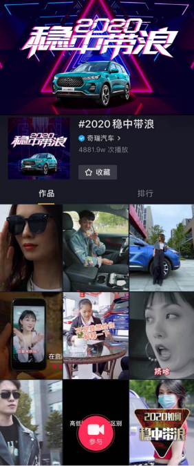 除此之外,奇瑞汽车还通过“线上直播团购”、“全平台矩阵云上市”、“稳中带浪抖音挑战赛”等一系列创新营销,进行跨圈层传播,向更广泛的消费者人群靠拢。各种圈层传播下来,如今奇瑞的品牌,已经撞到了不同圈层的心坎里。