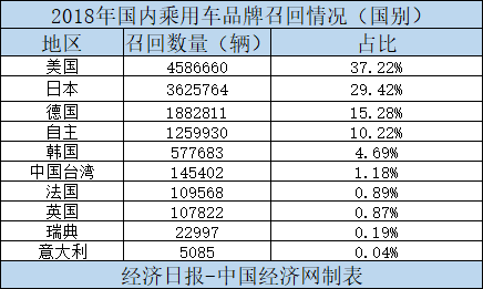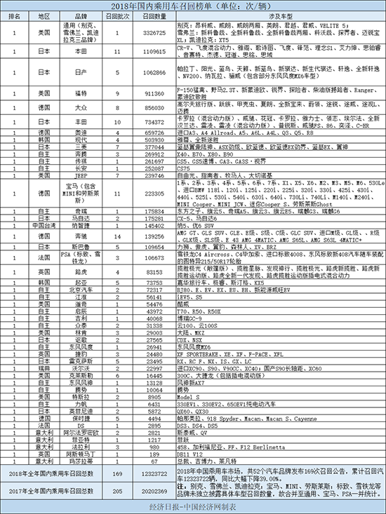 根据国家市场监督管理总局发布的召回数据,经济日报-中国经济网经过统计、整理,形成“2018年全年中国乘用车市场召回榜单”,以供大家了解2018年我国乘用车召回的情况。