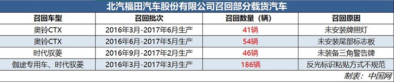 中国网汽车1月4日讯 日前,北汽福田汽车股份有限公司根据《缺陷汽车产品召回管理条例》和《缺陷汽车产品召回管理条例实施办法》的要求,向国家市场监督管理总局备案了召回计划,决定自即日起,召回部分北汽福田载货汽车,共涉及车辆327辆。具体如下: