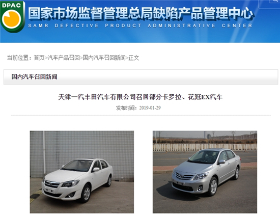 今日,丰田汽车(中国)投资有限公司和天津一汽丰田汽车有限公司分别发布召回公告,并决定自即日起,共计召回191472辆汽车。