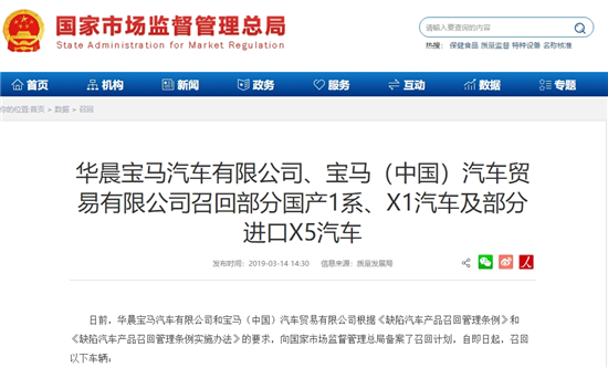 经济日报-中国经济网3月14日讯(记者 郭跃)今日,华晨宝马汽车有限公司和宝马(中国)汽车贸易有限公司发布召回公告,决定自即日起,召回共计29871辆汽车。