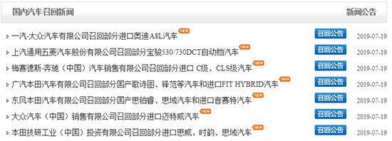 经济日报-中国经济网7月19日讯(记者 张羽)今日,国家市场监督管理总局缺陷产品管理中心连续发布7起乘用车召回公告,共涉及5个品牌、7个公司共计137274辆问题汽车。其中本田系因高田气囊的“历史遗留问题”召回产品94767辆,宝骏、大众、奥迪、奔驰则分别召回32658辆、9644辆、200辆、5辆。