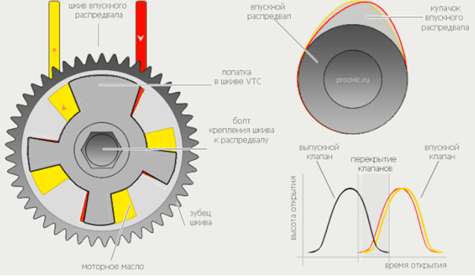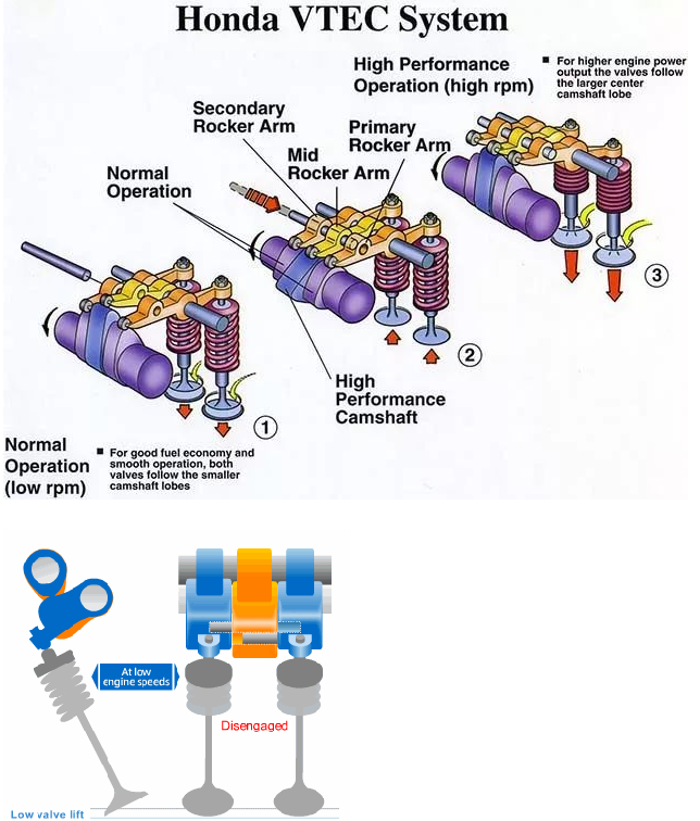 VTEC(Variable Valve Timing & Lift Electronic Control可变气门正时与升程电子控制系统)的最早雏形是本田在1983年推出的CBR400F(第一台CBR车型NC17)上使用的REV(旋转调节阀控制系统),其目的是让每个缸的气门数量可以在2个和4个之间进行变化,从而达到高转速时为发动机提供更多进气量,提高发动机的高转区动力输出。用在汽车上的VTEC是通过改变两组不同的凸轮而实现的,在高转时采用升程更大的凸轮以提高进气量提升动力,在低转速时用升程小的凸轮,降低油耗提升低转速扭矩,VTEC让一辆车在不同的工况下拥有完全不同的性能表现和个性,这就是让全世界的汽车爱好者痴迷本田性能车的原因。