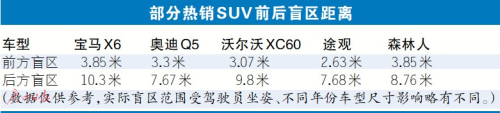 车头盲区的安全隐患一般存在于车辆起步、挪车位和慢速行驶中,新车驾驶员常常在停车时受到车头盲区困扰。至于车尾盲区——我们通过车身较高的SUV实测后发现,车尾盲区长度竟然可达10米!实测中,我们让一位成年人蹲在车后1.5米处,发现驾驶员在车内完全无法看见。对于车头的盲区,车尾的盲区安全隐患显然更大!