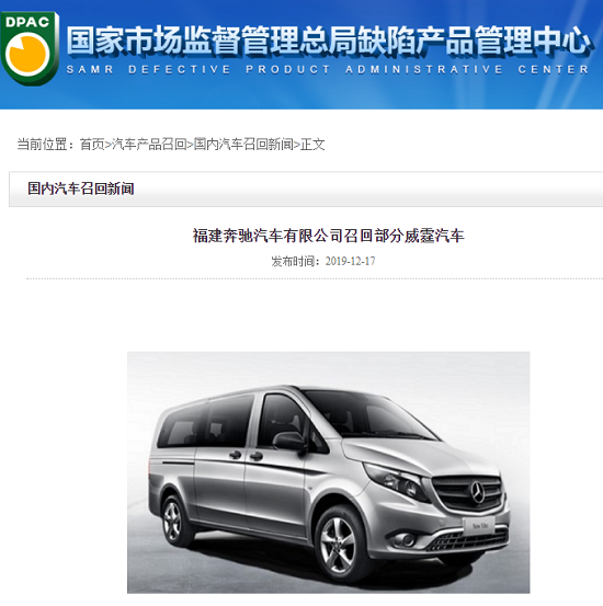 经济日报-中国经济网12月18日讯 昨日,福建奔驰发布公告称,自即日起,召回2016年8月18日至2018年5月21日期间生产的部分威霆车辆,共计14112辆。