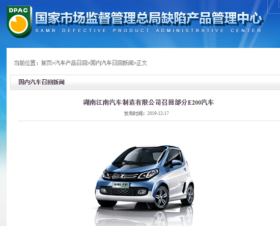 具体来看,江南汽车将自2019年12月25日起,召回2018年1月1日至2018年3月6日期间生产的部分E200汽车,共计312辆。 本次召回范围内部分车辆由于未按照要求进行线束屏蔽线接地,在电机和电机控制器出现接地不良时,极端情况下可能会造成电机输出功率突然下降;维修故障时,如果维修人员没有穿戴防护措施,同时接触电机和电机控制器时可能存在触电风险,存在安全隐患。