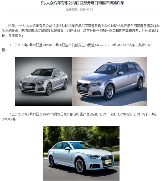 德系品牌的高频召回仍未止步,4月,德系3品牌共召回汽车478912辆。其中,奥迪分3批次共召回汽车多达414358辆,成为4月召回最多的品牌。值得注意的是,抢在4月最后一天,奥迪大规模召回了包括进口和国产在内,共计391874辆装载2.0T发动机的车辆。这也是对其此前2辆进口2.0T车型在集装箱内发生自燃事件的回应;事件还引发海关总署关注,并发布“关于部分进口奥迪汽车存在自燃风险隐患”的警示公告。