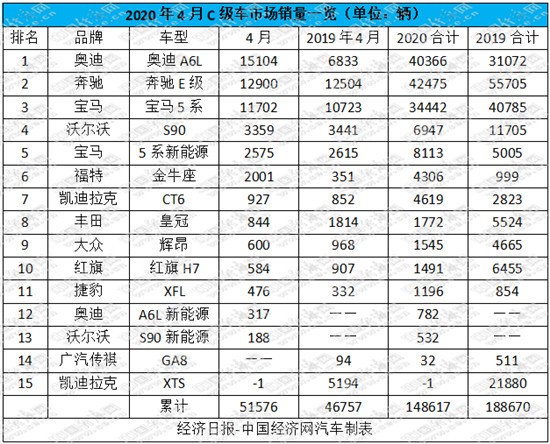其中,作为国产C级车市场的霸主,奥迪A6L在4月强势登顶该细分市场。4月,奥迪A6L的销量为15104辆;1-4月累计销量为40366辆,与身处第一的奔驰E级仅相差2109辆。如果保持目前的销量势头,奥迪A6L有望抢回年度“销冠”。