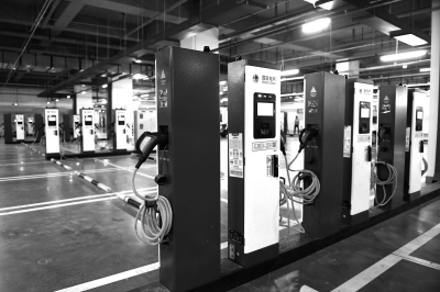 北京规模最大的集中式电动汽车充电站已于5月15日在五棵松体育中心地下停车场投入使用