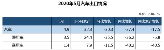 数据显示,5月我国汽车出口量为4.9万辆,同比下降37.4%;1-5月累计出口32.3万辆,同比下降17.5%。其中,乘用车出口需求的恢复滞后性更为明显,5月同比降幅高达36.2%。陈士华表示,行业上下应重点关注国内市场的恢复进程,以及海外疫情防控的形势变化对国内汽车行业带来的影响。