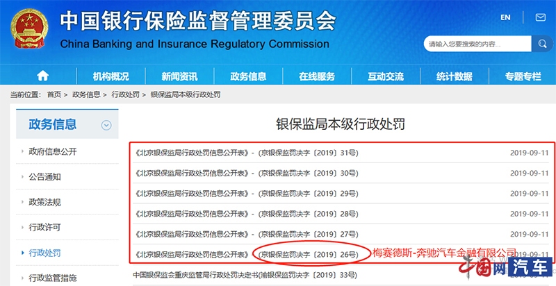 中国网汽车9月12日讯 记者从银保监会官网获悉,9月11日,北京银保监局对梅赛德斯-奔驰汽车金融有限公司(以下简称“奔驰金融”)做出行政处罚。