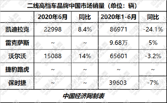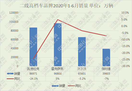 上半年,除凯迪拉克仍有着超过两成的降幅外,沃尔沃、保时捷同比下滑均在个位数,雷克萨斯更是实现5%的增长。不过,凯迪拉克比之一季度超过四成的下滑,也已有了较大幅度的回升。