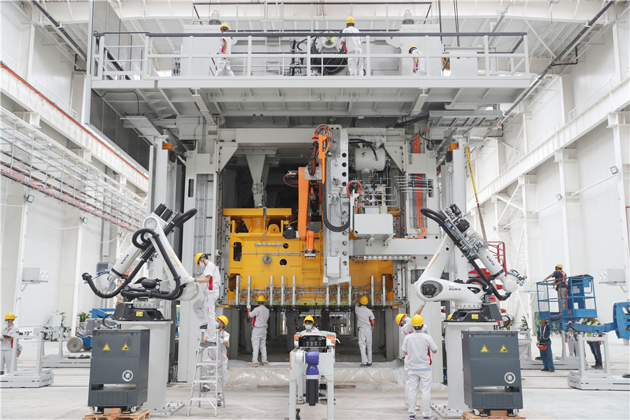 车身车间采用德国库卡和日本发那科装备,运用数字化双胞胎技术,在行业首创生产数据跨车间协同,是世界先进的高端智能“黑灯工厂”。