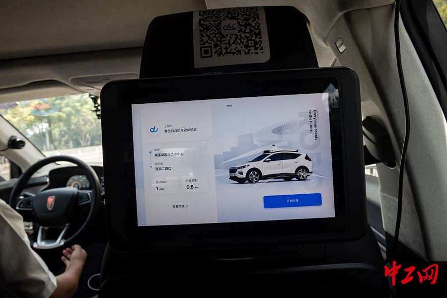 2020年8月6日,湖南长沙,百度自动驾驶出租车Robotaxi。据报道,在Robotaxi运营范围内,长沙用户打开百度地图进入打车服务选择“自动驾驶”或在百度APP搜索“Dutaxi”,均可体验自动驾驶出行服务。通过选择推荐的上下车站点并完善身份信息后,即可发单呼叫无人车。(图片作者:NICOLAS ASFOURI)