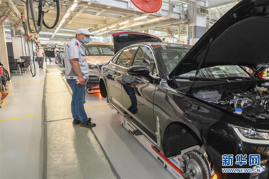 6月19日,在位于长春的一汽红旗总装车间,工人检查车辆。 记者从中国第一汽车集团有限公司获悉,该公司旗下红旗品牌汽车8月销量突破21000台,同比增长110%;1-8月累计销量突破108500台,同比增长108%。 新华社记者 张楠 摄