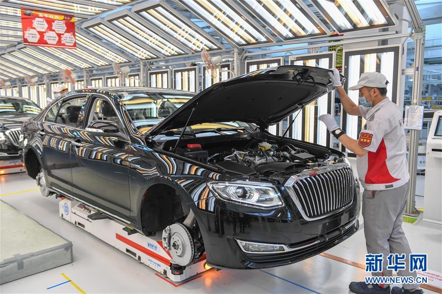6月19日,在位于长春的一汽红旗总装车间,工人检查车辆。 记者从中国第一汽车集团有限公司获悉,该公司旗下红旗品牌汽车8月销量突破21000台,同比增长110%;1-8月累计销量突破108500台,同比增长108%。 新华社记者 张楠 摄