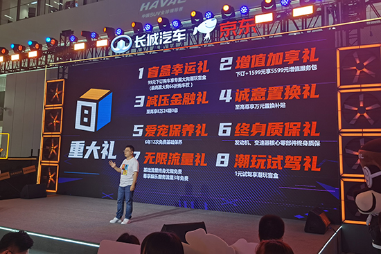 此外,哈弗大狗还为预订用户带来一系列购车政策,上市前预订哈弗大狗,均可享受最高折合达万元以上的八重大礼。同时,京东潮玩电商节还与本次预售发布会同步上线,用户只要参与预售活动,即可成为“潮玩盒伙人”,开启包含各种潮牌商品的“盲盒幸运礼”。