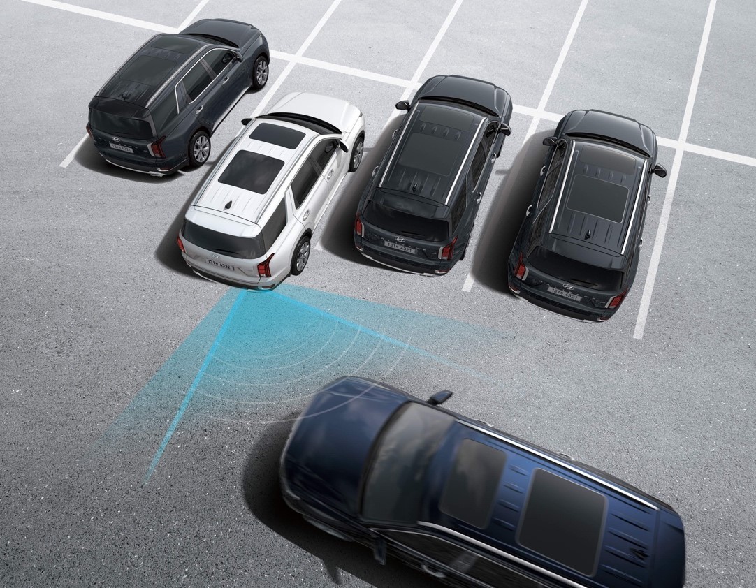 帕里斯帝(PALISADE)配备丰富的主动安全技术保障出行安全,图为后方交叉碰撞预警制动系统(RCCA)