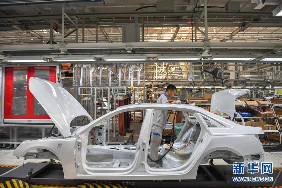 9月1日,在一汽-大众长春基地总装车间,工人在装配车辆。