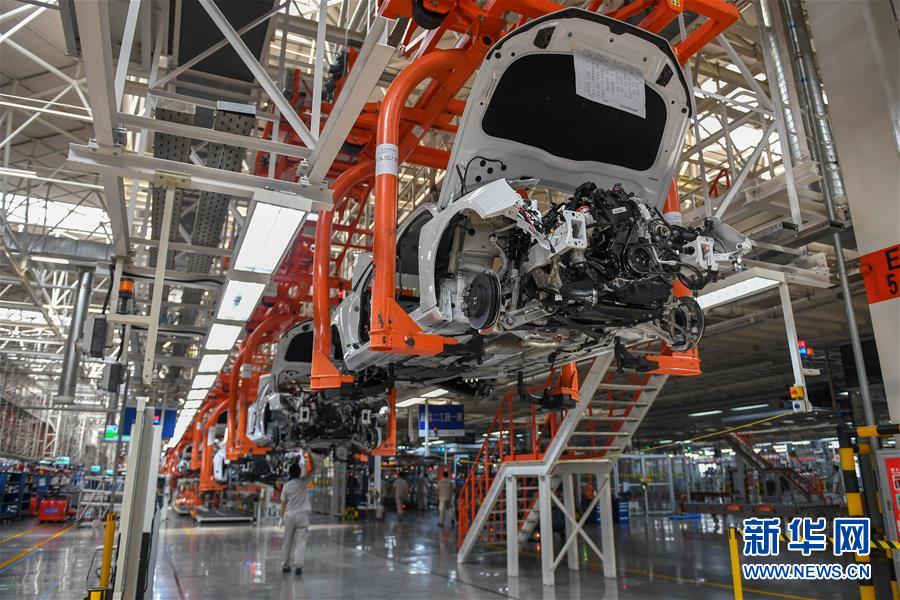9月1日,在一汽-大众长春基地总装车间,工人在装配车辆。新华社记者 张楠 摄