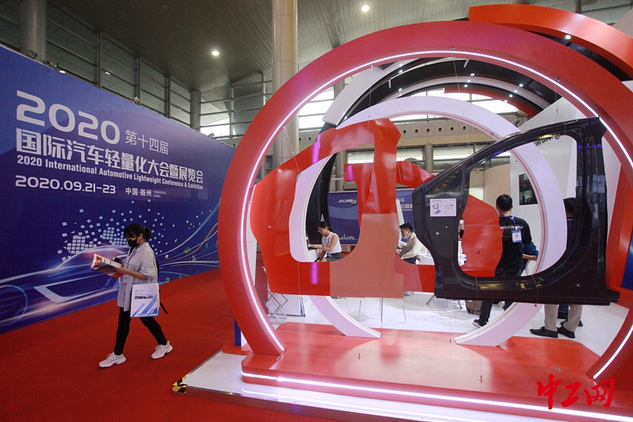 2020年9月21日,2020(第十四届)国际汽车轻量化大会暨展览会在江苏省扬州市国际展览中心开幕,本届展会共有150多家企业参展,聚集多项汽车新技术应用,设立涵盖车门防撞梁、座椅骨架、车门板、三电系统轻量化、异种材料连接和轻量化概念设计等个性化展区以及国家重点专项成果展展区、高校成果展展区。为观众呈现一场集聚“新技术、新体验”的汽车科技盛宴。(图片作者:孟德龙)