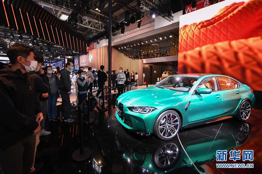 10月4日,观众在宝马汽车展台参观展出的汽车。 当日是中秋和国庆假期第四天,不少市民在中国国际展览中心举行的2020(第十六届)北京国际汽车展览会上观展。 新华社记者鞠焕宗摄