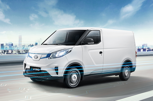 EV30所创的纯电动专属平台架构充分满足物流行业对载货空间的需求:EV30内部宽度设计为1706mm,使装载容积扩大5%,最大载货空间达6.3立方米,在同类产品中载货空间最大。此外,整车还采用了铝合金车体及高分子复合材料打造的坚固车体,是同级中唯一通过国家碰撞测试的车型,质量却比同类车型整体减重200KG。EV30前后轴质量分布合理,采用70kW、220N•m的同级最大电机,使常用的0-50km/h 加速性能提升25%,仅需5.3秒,堪称同级最强动力;同时,最大爬坡度达到30%,使车辆可在欧洲道路顺畅通行。