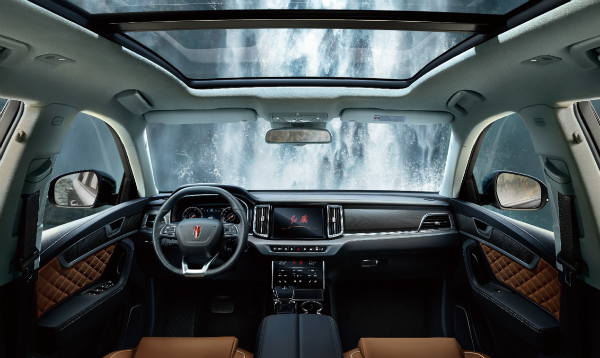 内饰设计和外观格调一致,大量平直线条或者矩形元素以及较为对称的布局设计,看起来一板一眼十分稳重,不过由于是上一代设计语言,相比红旗H9的那套内饰少了一些典雅贵气。当然,在用料上HS7足够豪华,木质饰板、金属装饰条、缝线等软质材料应有尽有。此外,全液晶仪表、大尺寸中控屏以及触控式空调面板等配置也保证了人机交互功能紧跟时代,车内的科技感、豪华感、工艺感都对得起它的身份和售价。